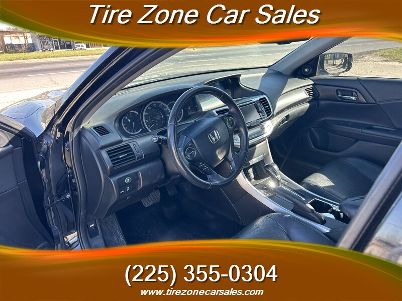 Bright, comfortable and fun to drive — this 2015 Honda Accord EX-L V6 is powered by a smooth 3.5L V6 putting out 278 hp and 252 lb-ft of torque. Factory equipment includes leather-trimmed heated front seats with power-adjustable driver’s seat, dual-zone automatic climate control, a one-touch power moonroof, smart key entry with push-button start, steering-wheel audio and cruise controls, Bluetooth hands-free/audio, USB/AUX inputs with infotainment/HondaLink compatibility, a multi-angle rearview camera, and a full suite of safety gear (ABS, stability and traction control, airbags and TPMS) for confident, comfortable driving.