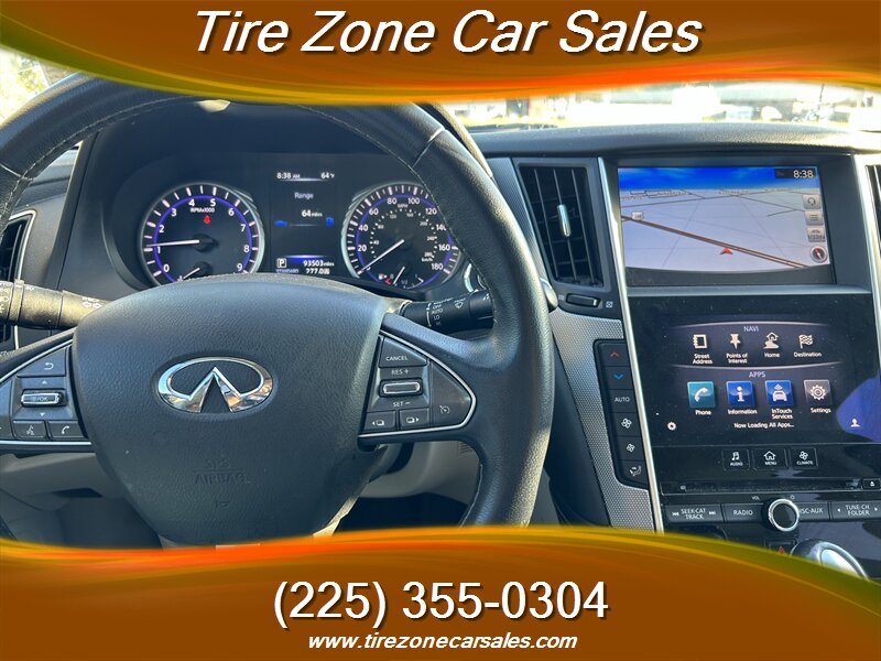 For entertainment and connectivity, the Q50 is equipped with a premium audio system, Bluetooth connectivity, and a responsive infotainment display that provides easy access to navigation, music, and hands-free calling. The vehicle also includes USB ports for charging devices, ensuring you stay connected on the go.
